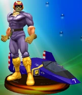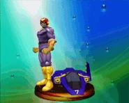 - ↑ HAL Laboratory. Super Smash Bros. Melee. Nintendo. Nintendo GameCube. 2001-12-03. “Captain Falcon's speedy midsize star cruiser boasts an on-board computer that allows Falcon to control it remotely ... perhaps that's why it's never appeared on-screen in an F-Zero game. Without this ship, Falcon couldn't prowl the galaxy like a lone wolf: the Blue Falcon is a state-of-the-art machine, but it's only used for F-Zero races.”