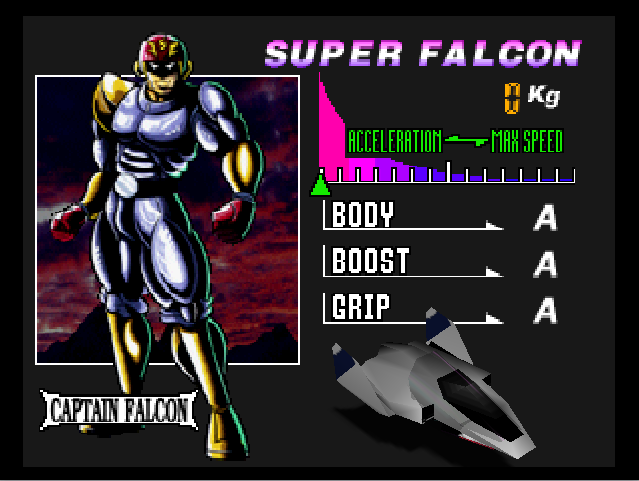 - In F-Zero X, Captain Falcon is the only pilot to have two 1st place portraits, instead of just one.